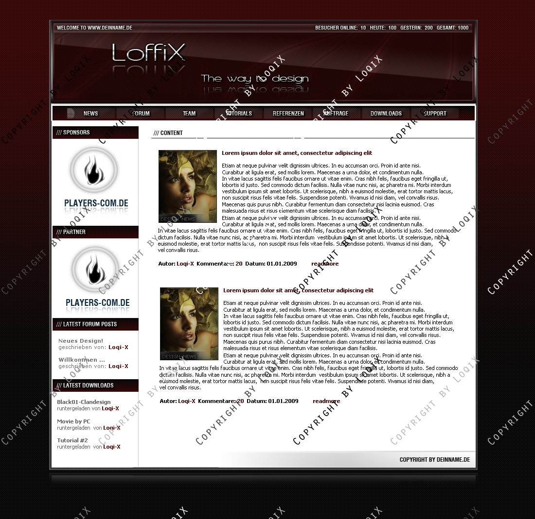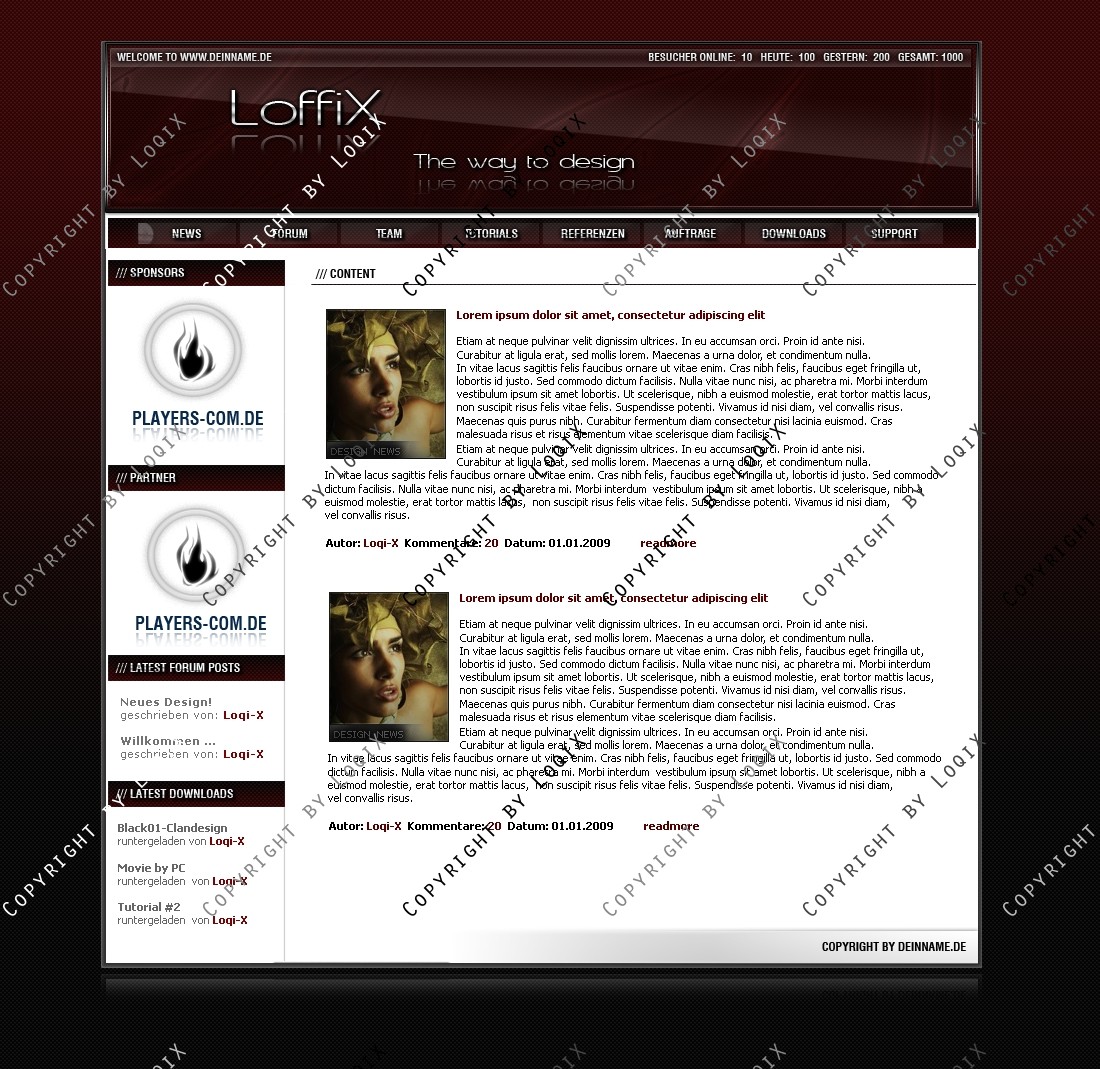 Hinweis: Hierbei handelt es sich nur um das Design, eine Anpassung an ein CMS-System ist nicht im Preis enthalten!
