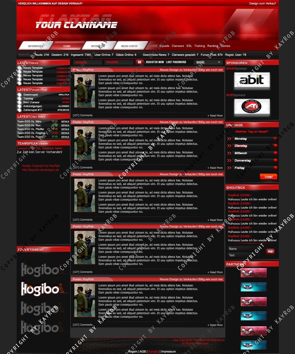 Dieses Clandesign darf OHNE genehmigung von mir Robert Erdmann nicht zum Free Download auf anderen Webadressen angeboten werde. Das weiter verschicken von Design.psd ist auch UNTERSAGT. Sollte es dies der Fall sein, werde ich Rechtliche Schritte einleiten und dies Ahnden!