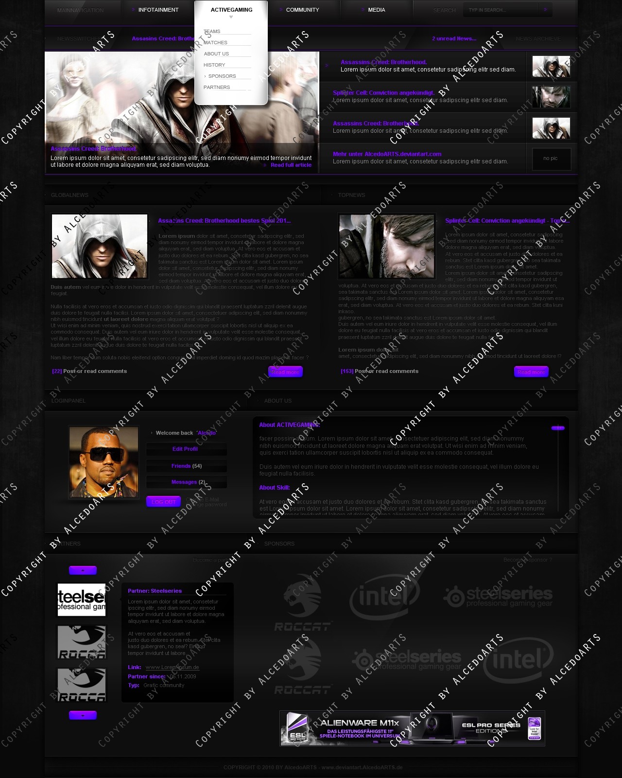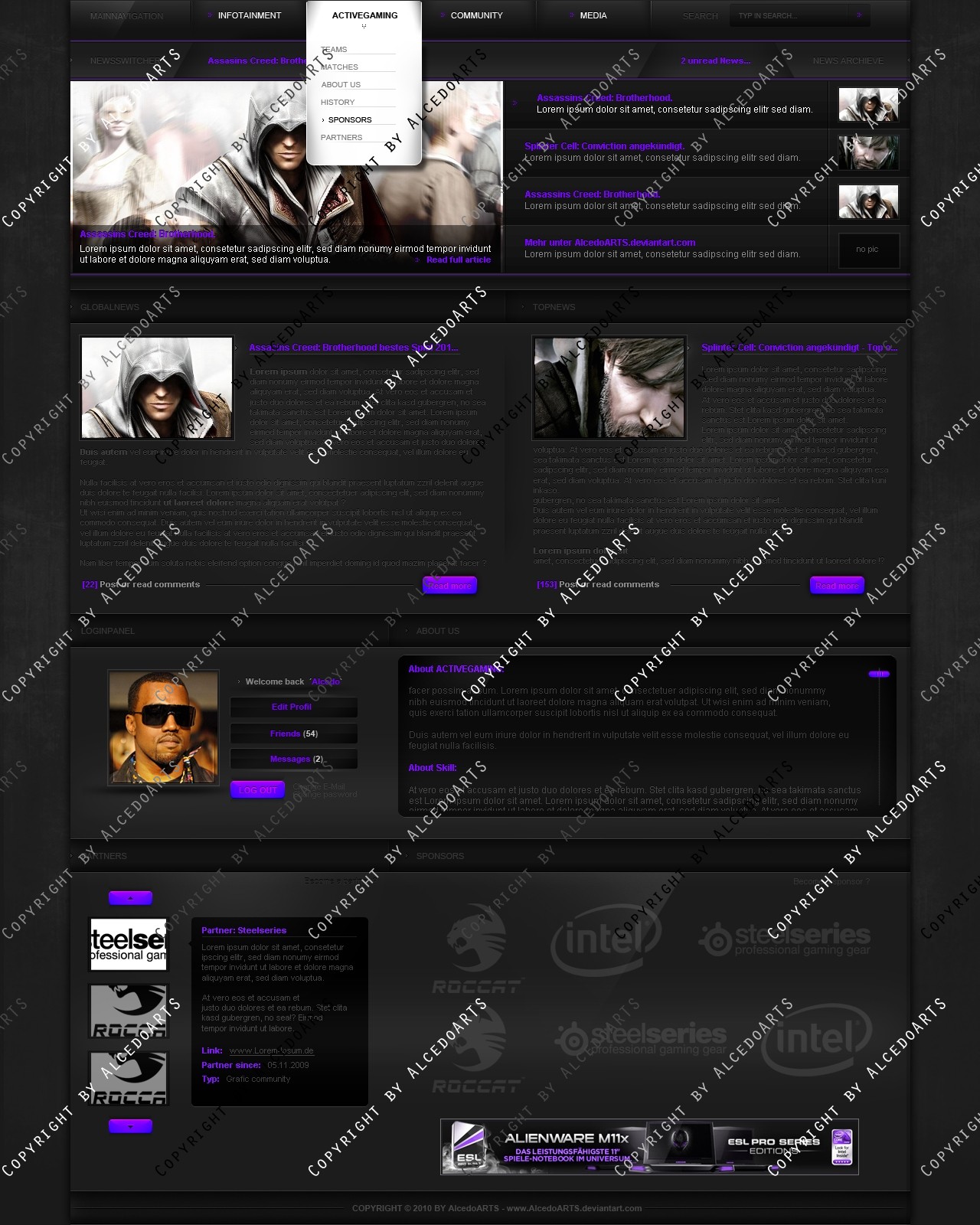 Ich verkaufe folgendes Clan Layout mehrmals oder exklusiv zu einem für mich angemessenen Preis-/Leistungsverhältnis! Verkauft werden lediglich die .psd-Dateien des jeweiligen Templates, das bedeutet also, dass kein Code bzw. Slicing im Preis inbegriffen ist.