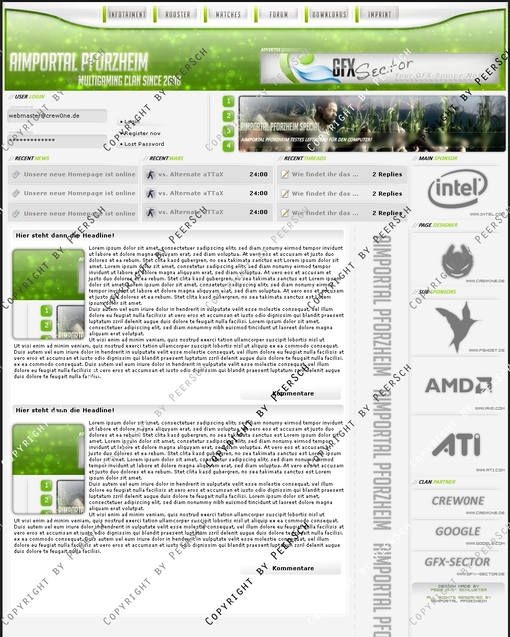 Zu einem meiner Meinung nach unschlagbaren Preis! Was Sie hier kaufen ist lediglich die PSD Datei, gerne kann ich es Ihnen gegen einen Aufpreis von 12,50€ an ein CMS Anpassen, zur Auswahl stehen hierbei: webSPELL, Clansphere, Teklab, Devilz und andere CMS auf Anfrage ohne Aufpreis.