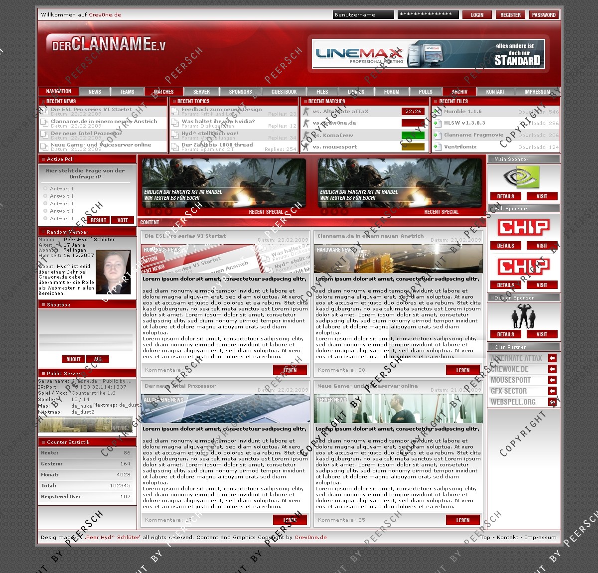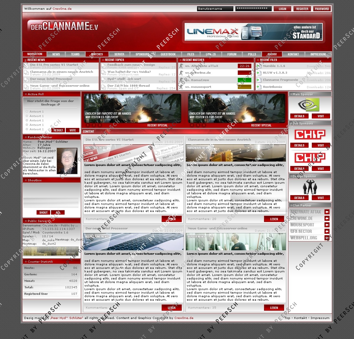 Was Sie hier kaufen ist lediglich die PSD Datei, gerne kann ich es Ihnen gegen einen Aufpreis von 13€ an ein CMS Anpassen, zur Auswahl stehen hierbei: webSPELL, Clansphere, Teklab, Devilz und andere CMS auf Anfrage ohne Aufpreis.