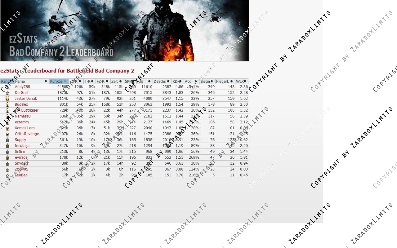 ezStats (BFBc 2) - Leaderboard für deine Clanhomepage powered by ezzemm