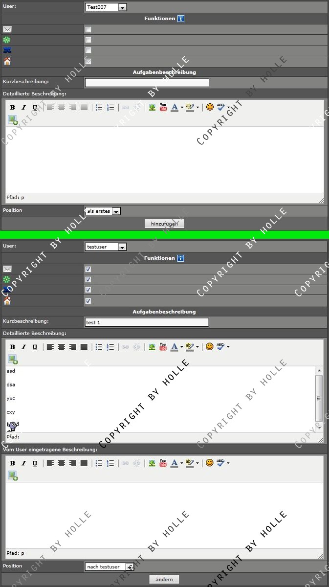 Bild 4: Oben: Formular zum eintragen einer neuen Aufgabe, Unten: Aufgabe editieren