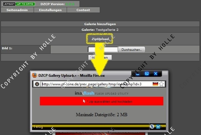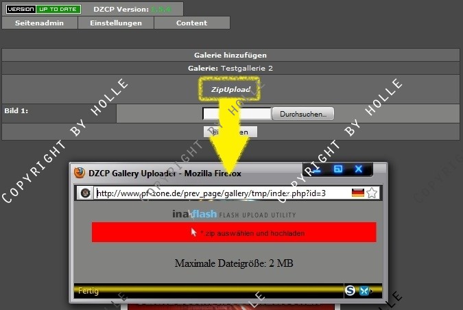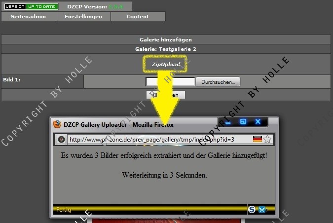 Darum habe ich diesen kleinen aber feinen Mod für das DZCP geschrieben, welcher euch erlaubt, eine zip-Datei mit Bilddateien auszuwählen & hochzuladen.
