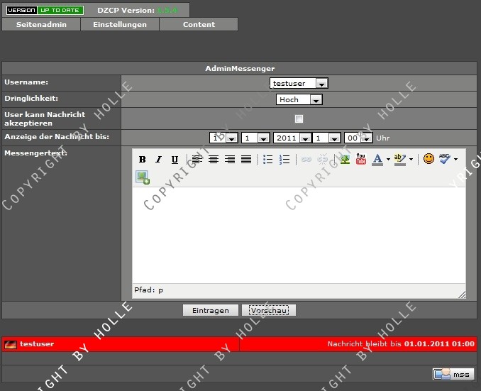 Hier nun mein Ergebnis: das AdminMessenger Addon