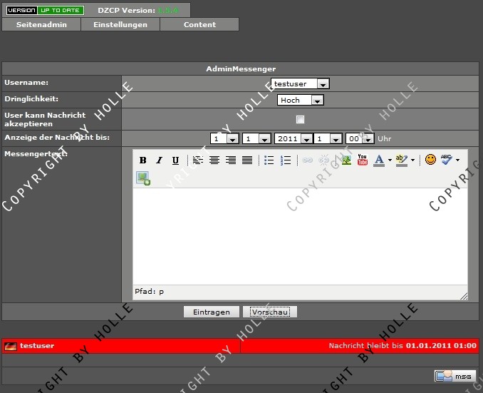 Nachdem mich einer meiner Mitadmins auf die Idee gebracht hat, ein Nachrichtensystem zu bauen, was einem Admin gestattet, einen User direkt anzuschreiben und eine Nachricht für längere Zeit bei ihm als Info anzeigen zu lassen, habe ich mich drangesetzt und ein neues Addon gecodet.