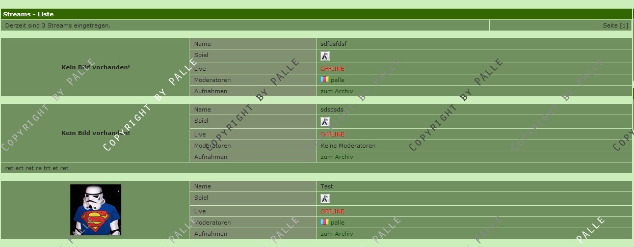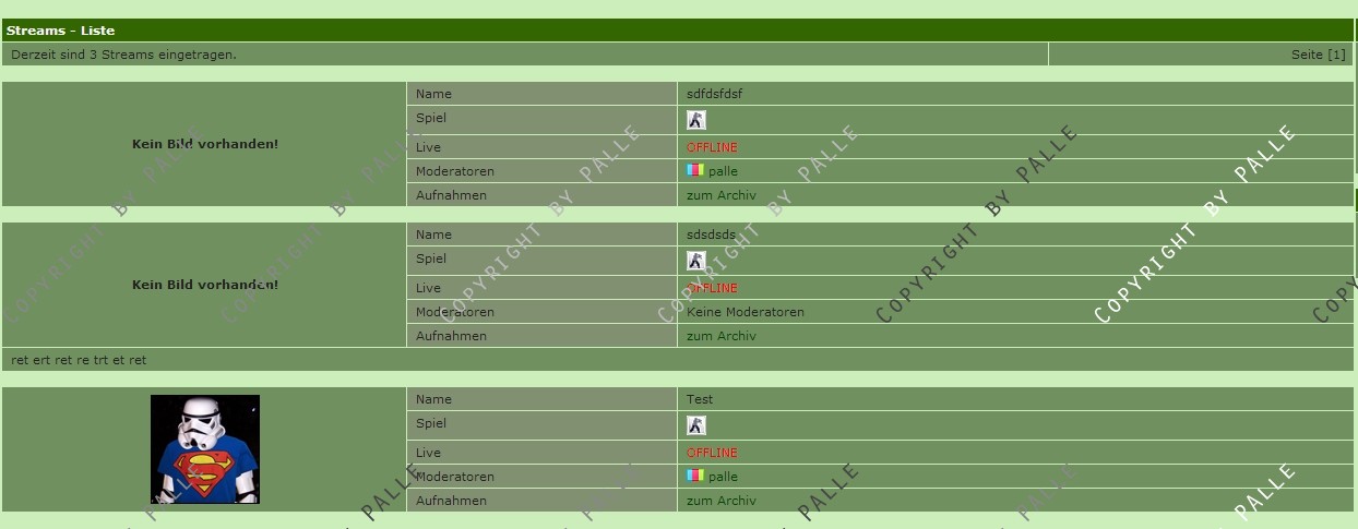 Diese werden aufgelistet, sofern ein Stream Online ist, wird dieser Automatisch auf eine weitere Unterseite verlinkt wo man diesen Stream anschauen kann und dabei ggf. etwas Chatten kann.