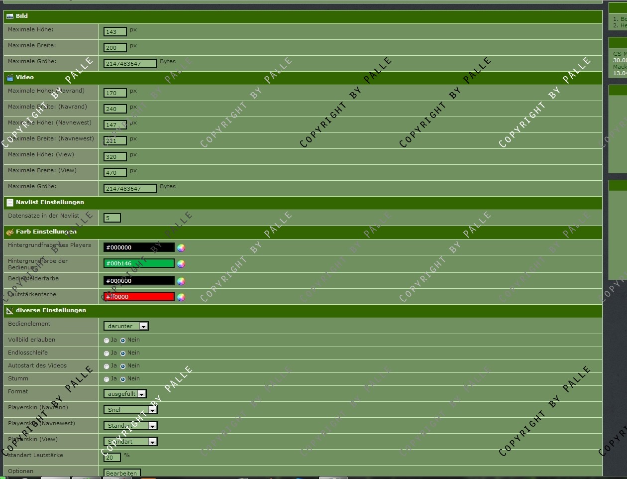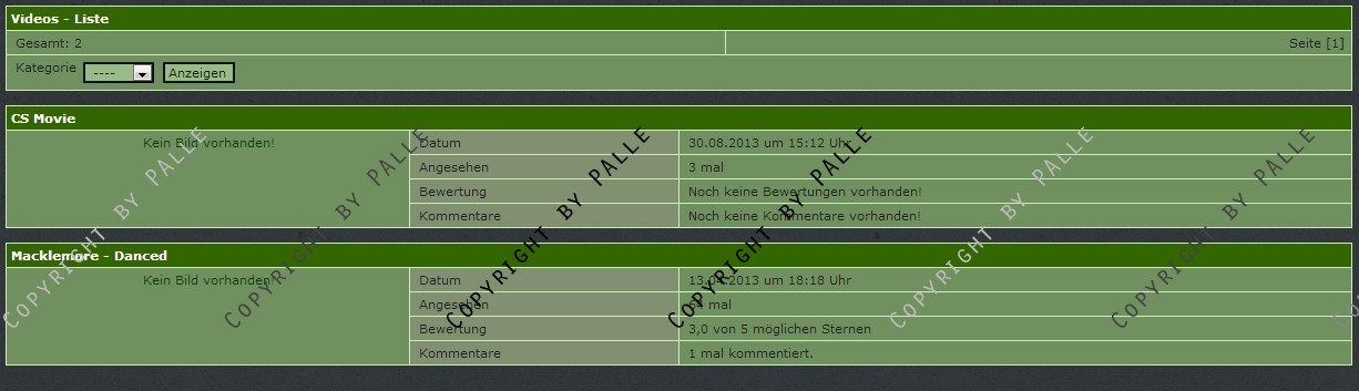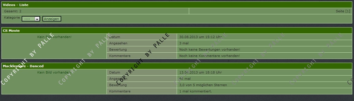 Es werden 3 Navlisten mitgeliefert (letzten X anzeigen, ein random video sowie das neuste video können ausgegeben werden).