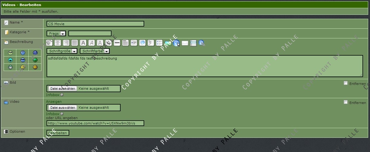 Man kann eigene Videos hochladen (flv Format) oder aber Youtube URLs angeben.