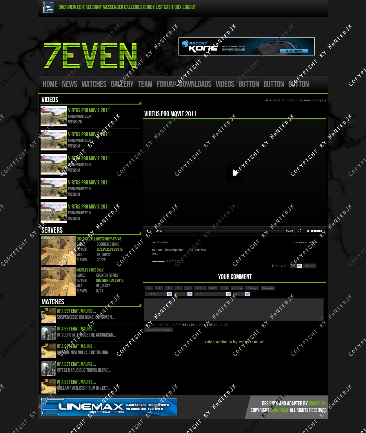 Include templates: News , Forum , Matches , Profile