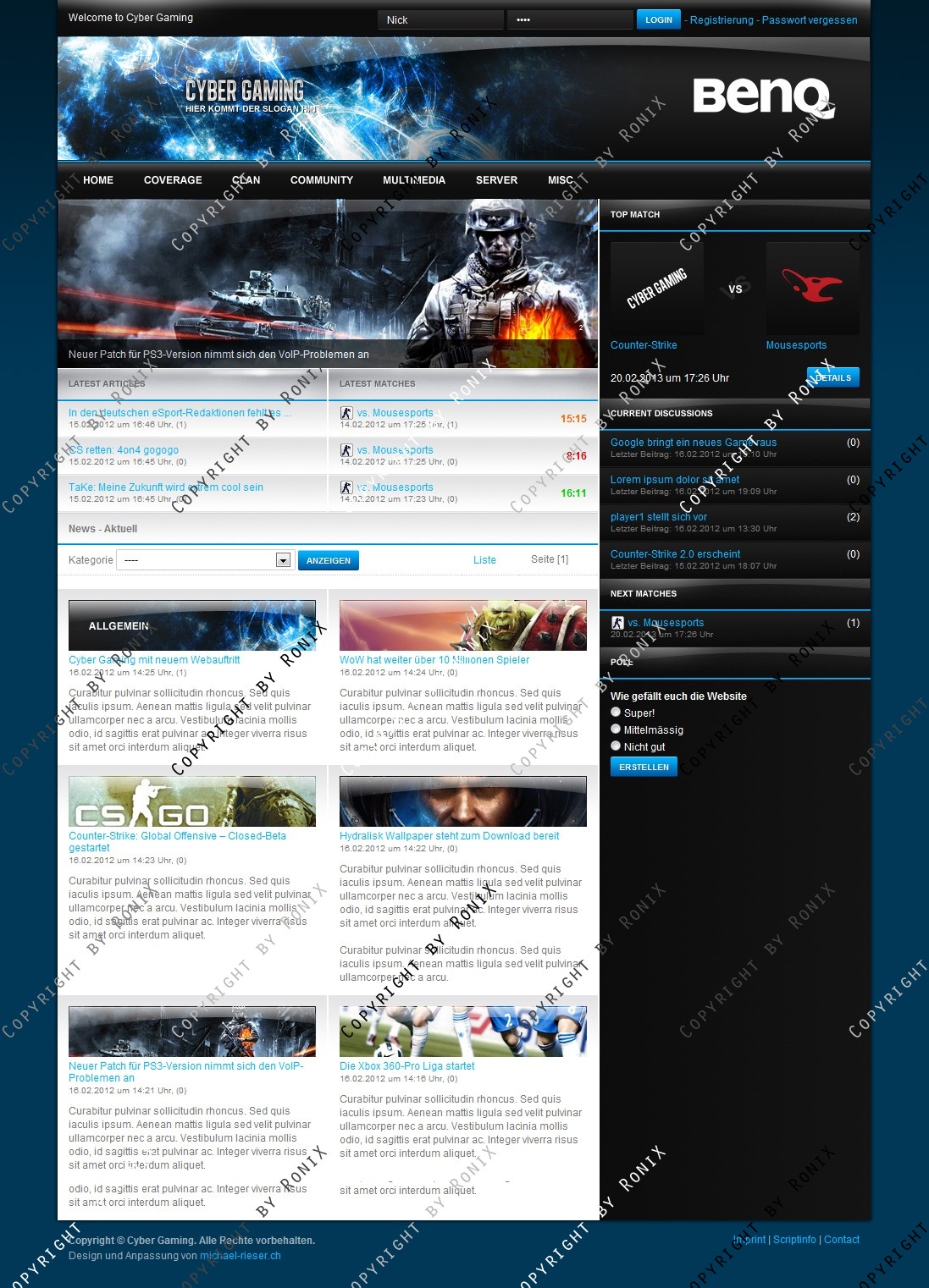 - Photoshop-Vorlagen für Coverages, Header, News, Sponsoren und Top-Match-Logos