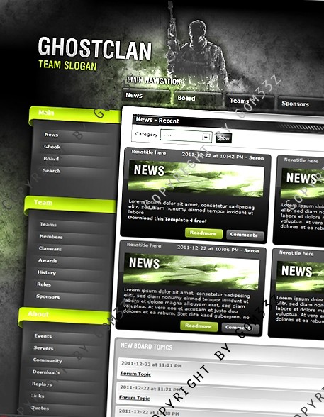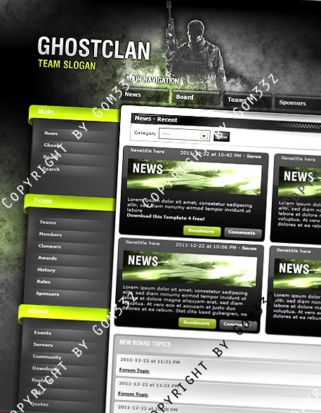 Wir verkaufen ein sehr schönes Ghost Clan Premium Template Design angepasst an die aktuelle ClanSphere Version: 2011.3