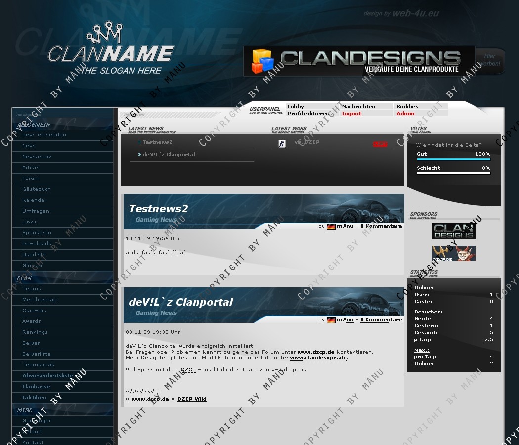 Das Template ist an das Content Management System DZCP angepasst und vollständig implementiert. Alle relevanten Elemente sind angepasst und zusätzliche Module sind auch erhältlich. Im Paket enthalten sind folgende Bestandteile:
